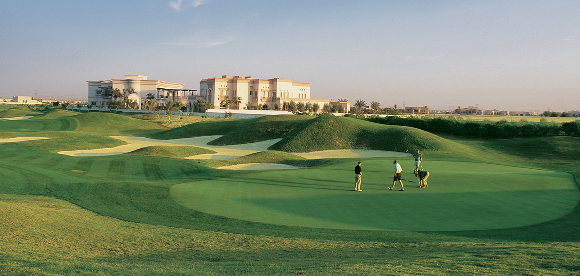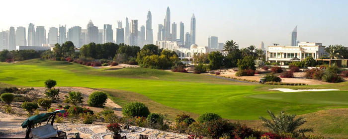 Prestigious Emirates Hills is a gated residential community, located around the rolling greens of Montgomerie Golf Club Dubai and its neighboring driving range. An upscale hotel overlooks the golf course and has onsite dining choices from gastropubs with terraces to high-end restaurants. Elegant villas with pools line leafy streets, and there are play areas for kids as well as schools and sports facilities.
